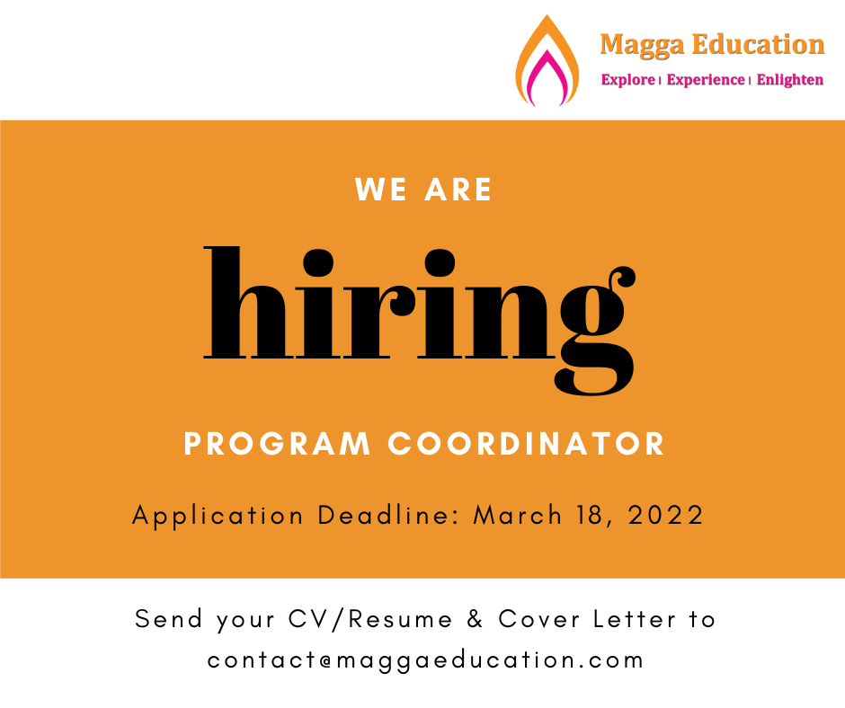 - Please send your cover letter and CV/Resume to contact@maggaeducation.com by March 18, 2022.